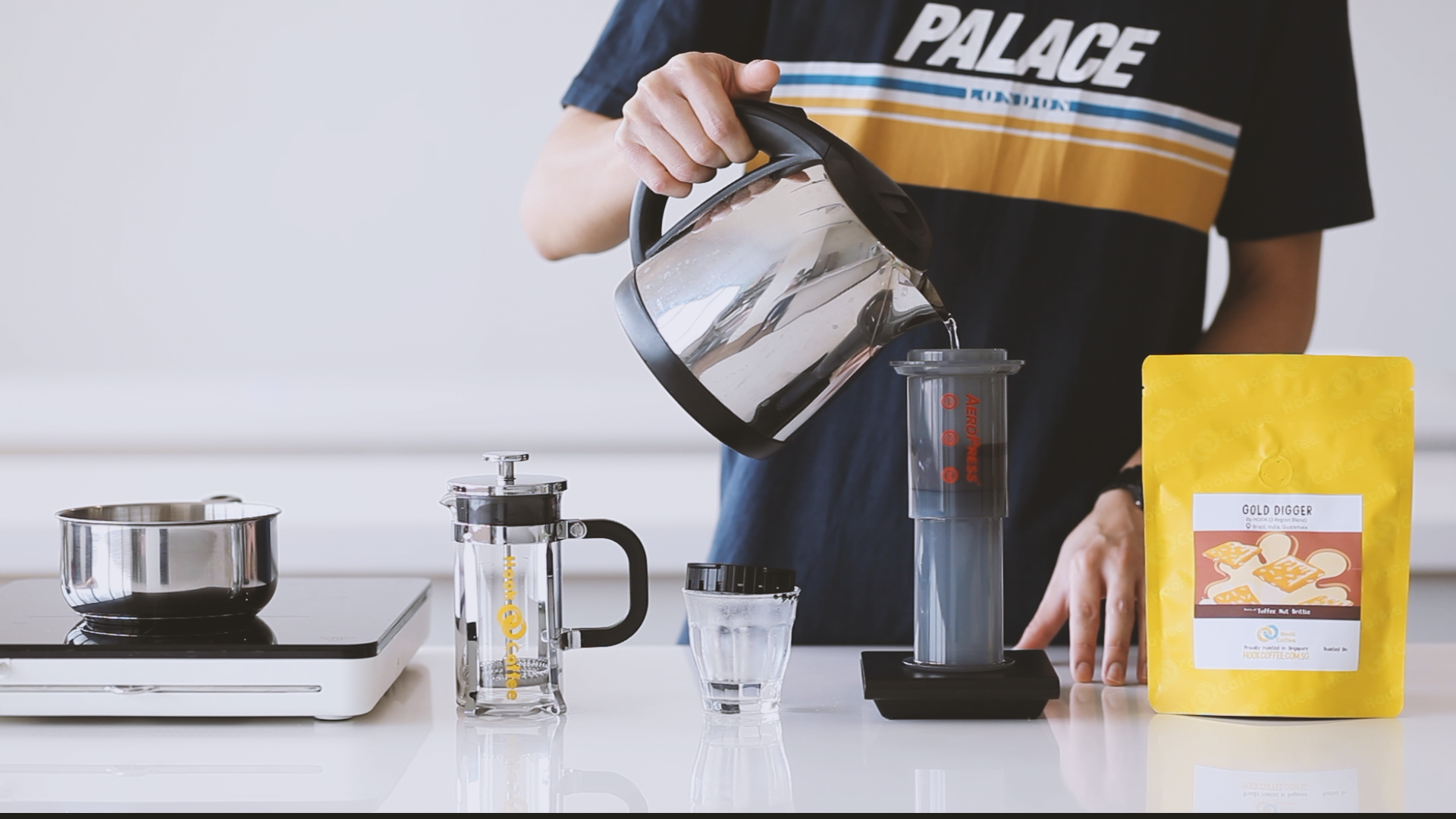 1. Place the Aeropress filter paper in the filter cap, and rinse paper with water once it comes right off the boil. This removes the smell and taste of paper.